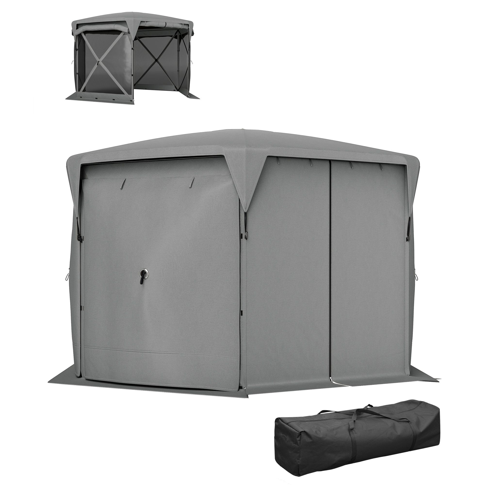Home > Outsunny 11 x 11ft Pop Up Gazebo Screen Tent with Removable Roof Cover, Roll-up Wind Panels for Camping, Backyard, Dark Gray